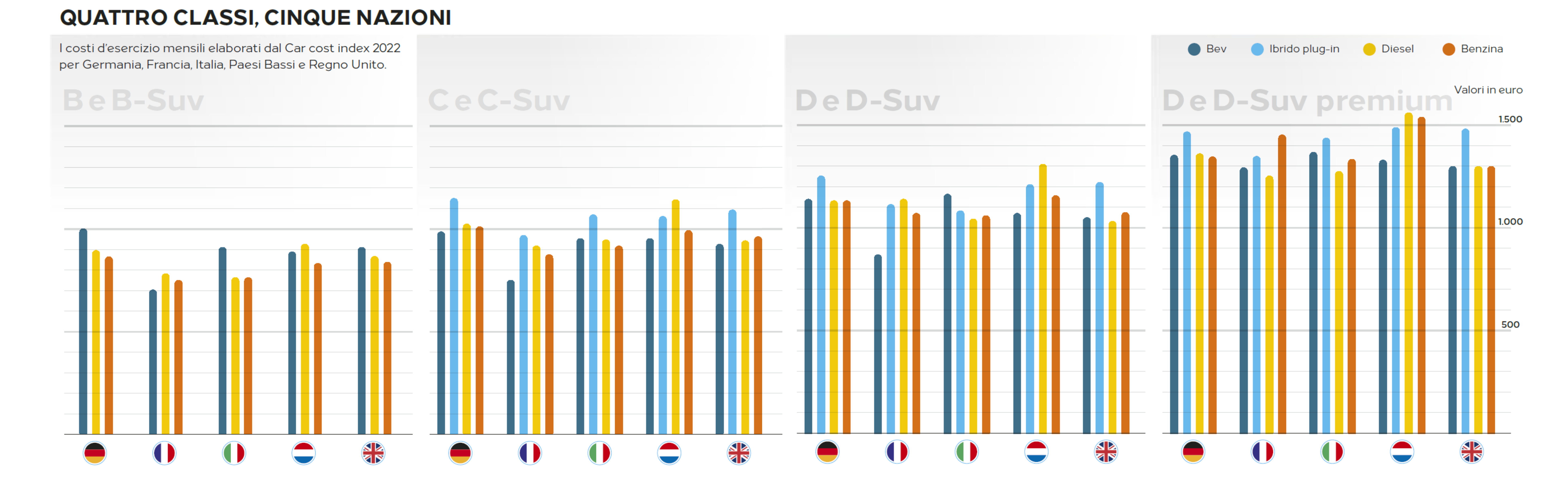 Anche per questa classe l’Italia non fa parte dei Paesi dove dotarsi di un modello a corrente risulta più conveniente.